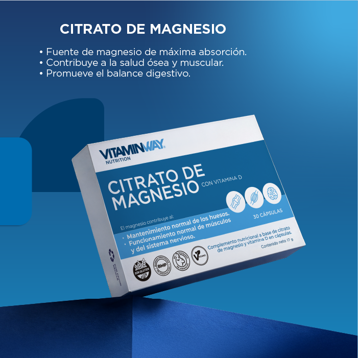Citrato de Magnesio Vitamin Way® te brinda magnesio de alta absorción para cuidar tu cuerpo cada día. Con vitaminas C y D, ayuda a relajar los músculos, fortalecer los huesos, mejorar la digestión y apoyar el equilibrio del sistema nervioso.