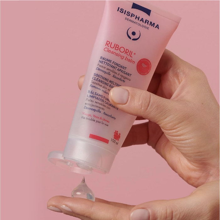 Es un bálsamo limpiador fundente diseñado para pieles sensibles con tendencia al enrojecimiento (rosácea). Su textura innovadora se transforma de bálsamo a aceite y luego a crema, permitiendo limpiar, desmaquillar y calmar la piel sin fricción, respetando la barrera cutánea.